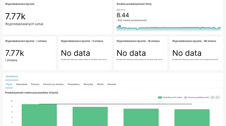 Samo gromadzenie danych to tylko połowa sukcesu. W Aluplasti poszliśmy o krok dalej i zamieniliśmy tysiące suchych raportów w przejrzyste dashboardy, które obrazują sytuację w firmie w czasie rzeczywistym. Zarząd przestał polegać na intuicji czy czekać na zestawienia do końca miesiąca - teraz najważniejsze wskaźniki są dostępne od ręki, na jedno kliknięcie.
